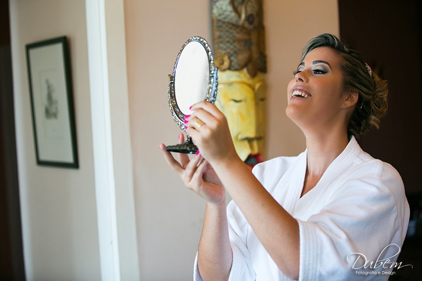 A caminho da cerimônia estava super tranquila, fui no carro com minhas amigas e meu amigo, que foi o motorista, cantando muito e rindo pra caramba! Quando finalmente chegou, elas sairam do carro e eu fiquei lá aguardando, ai fiquei GELADA! Minha cerimonialista ( Fatima Pinto ) falou para eu sair, me deu um frio na barriga, um nervoso absurdo. Ao ver minha mãe, quase desabei de chorar, ela me elogiou muito e disse o quanto eu estava linda, com os olhos cheios de água! E eu vi ela arrumada, maquiada "o poder" rs, nunca tinha visto ela tão linda como nesse dia! Contive o choro pq eu sou "Diva" rs...Fui para a salinha da noiva, aguardar a hora certa de entrar